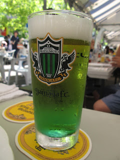 松本の山雅FCのビール、カクテルみたいな緑色です